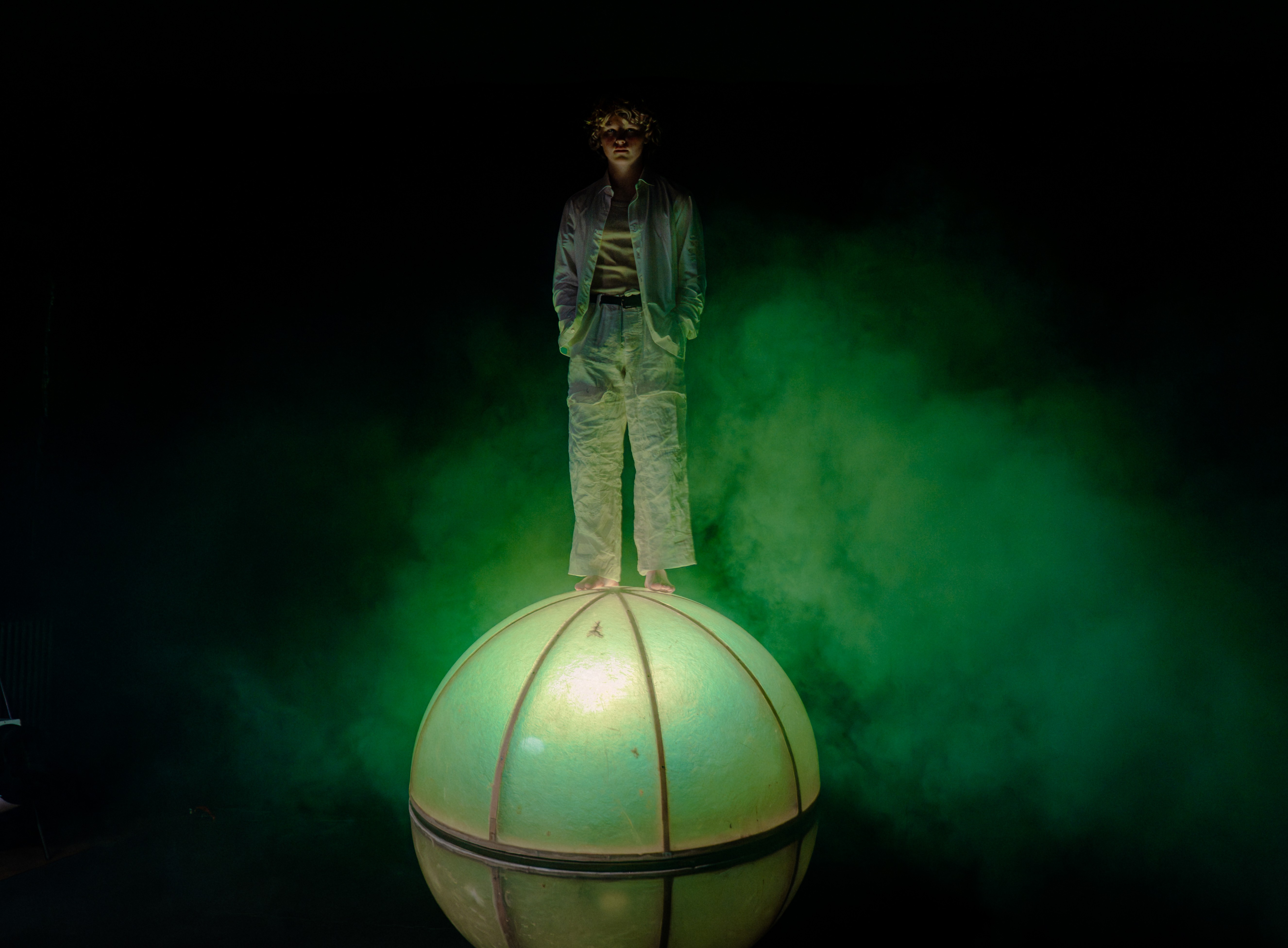 The Walking GLOWbe is an innovative sphere inspired by the traditional circus walking globe. Its LED-covered surface delivers a music-interactive light show as a performer balances on top.